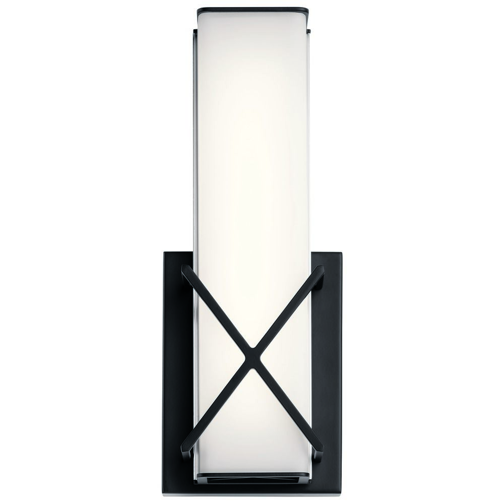 Collection: Trinsic, Material: Steel, Finish Color: Matte Black, Width: 4.5", Height: 12", Length: 3.5", Depth: 3.5", Height From Outlet Box: 8.75", Backplate Width: 4.21", Backplate Length: 5.91", Lamping Type: LED, Number Of Bulbs: 1, Wattage: 34.9 Watts, Cri: 90, Color Temperature: 3000 Kelvin, Lumens: 625, Dimmable: Yes, Moisture Rating: Damp Rated, Desc: The LED Wall Sconce of the Trinsic(TM) collection is an intricate, yet subtle aesthetic to complement any modern bath with Satin Etched White glass and a unique criss-cross design in a Polished Chrome finish. Back Plate Height: 5.91 / Back Plate Width: 4.21 / Dimmable: Yes. ,