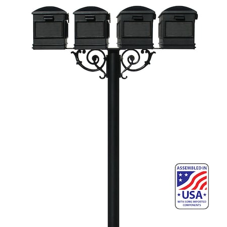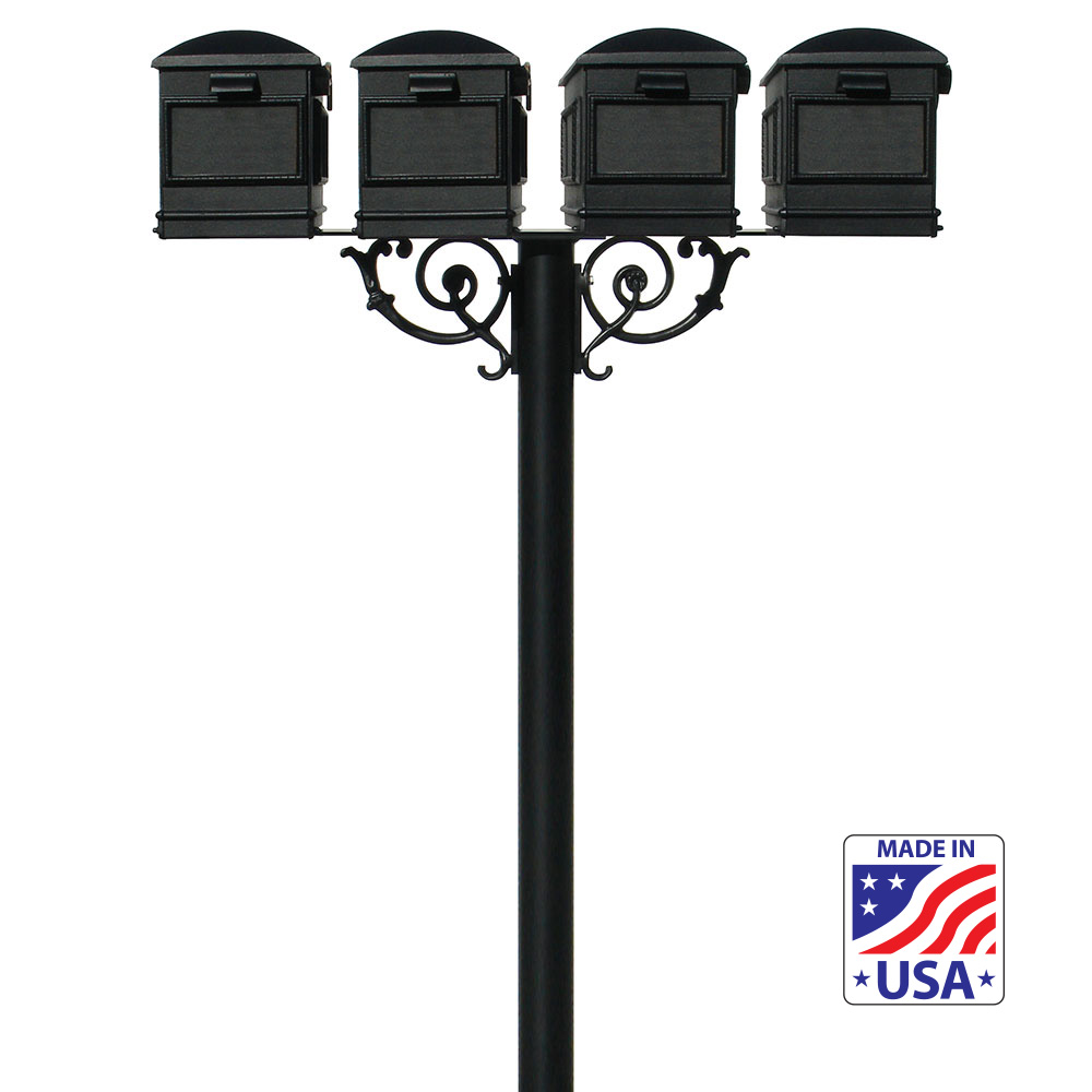 Qualarc HPWS4-US-000-LM Hanford Quad w/Scroll Supports Post Mounted Mailbox System, Black