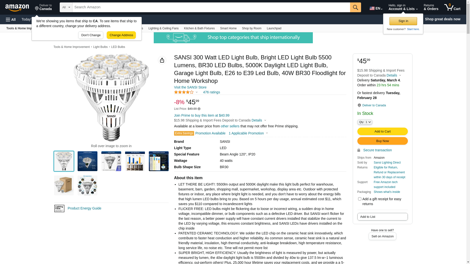 <b>Good quality makes SANSI!</b><br>SANSI has been dedicated to offering clients the best LED products possible with our 25-year experience and technologies.<br> If you’re ready to replace your old incandescent bulbs with new high-energy efficient LED bulbs, then look no further than <b>SANSI SUPER BRIGHT BR30 40W LED BULB.</b><br><br><b>Advantages:</b><br>- Less power-hungry, NO flickering, NO humming.<br>- Green and Eco-friendly, No mercury, No UV, infrared or other deleterious radiation. <br>- Overall plastic lamp body, lighter and safer.</br>- High luminous efficiency and daylight.<br>- Unique patented technology makes it long service life, 23 years based on 6 hrs/day.<br>- Premium ceramic makes the bulb insulated, heat dissipated, high-temperature resistant and corrosion resistant.<br>- Hollow pattern and driver isolation make it better to dissipate heat.<br>- Free E26 to E39 adapter meets different installation needs.<br>- Built-in high-efficiency power supply with constant current.<br>- 30000 hrs to 70% lumen maintenance( at 77℉ )*<br><br><b>Package Includes:</b><br>1 x SANSI 40W led bulb<br>1 x E26 to E39 adapter<br><br><b>Wide Applications:</b><br>Basketball Court, Gym, Warehouse, Factory, Church, Mall, Studio, Supermarket, Tunnel, Barn, Hospital, Restaurant, Workshop, Office, Basement, etc.<br><br><b>Customer Notice:</b><br>1. Please turn off the power before installing or changing assembly parts.<br>2. The input voltage and lamps should be matched. After connecting the power line, please make sure the wiring section is insulated.<br>3. This bulb is not waterproof. It is ideal for both indoor and protected outdoor fixtures.<br>4. Do not use with dimmers, otherwise, the performance will be impacted.<br>5. Make sure the size be suitable for your fixtures!<br>6. Input Voltage: 120V. Don't use ballast.<br>7. For any possible damaged product, please contact us first and we will send you a replacement or refund.