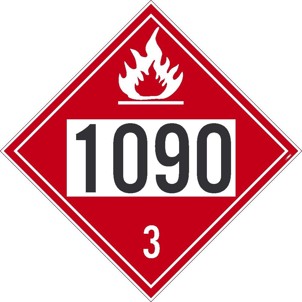 Placard, Acetone, Four Digit 1090, 10.75X10.75, Removable Ps Vinyl, Pack 100