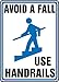 Accuform MSTF505VA Aluminum Safety Sign, Legend "Avoid A Fall USE HANDRAILS" with Graphic, 14" Length x 10" Width, Blue/Black on White