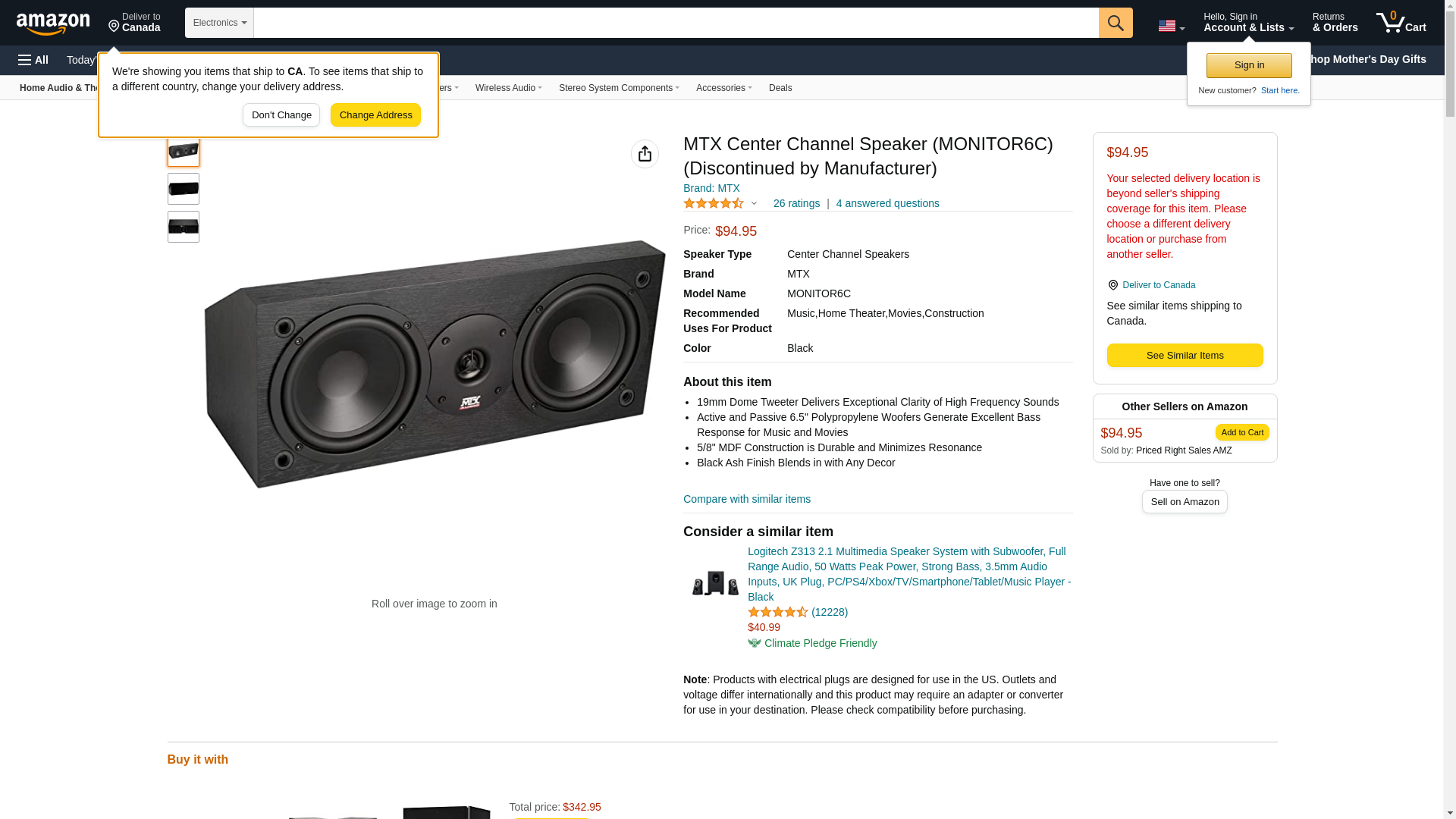 MTX Center Channel Speaker (MONITOR6C) (Discontinued by Manufacturer)
