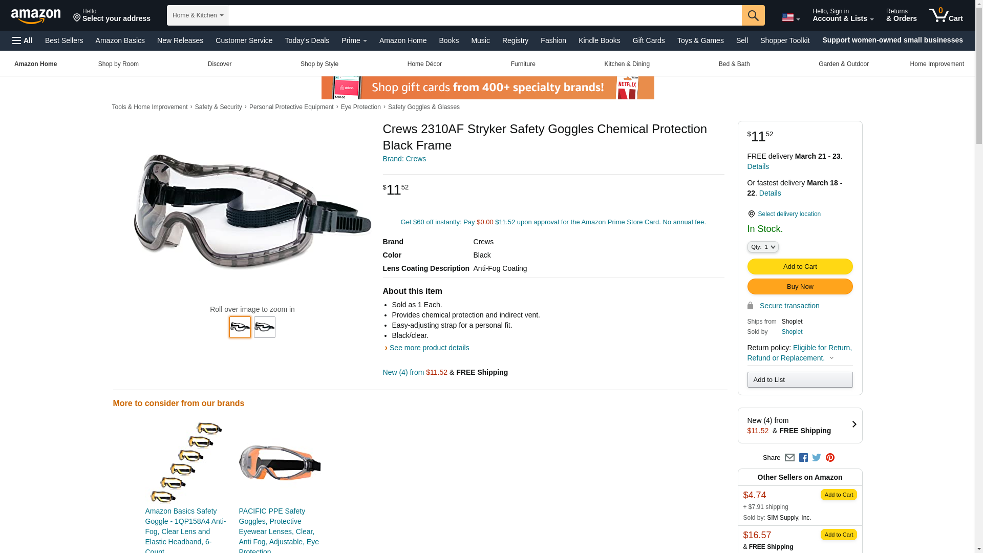 Crews? Stryker Safety Goggles, Chemical Protection, Blac