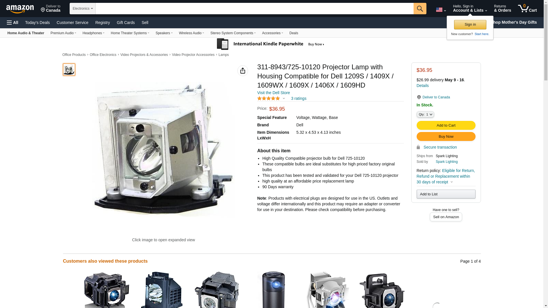 Projector Lamp :Product Name :OEM Projector Lamp With Generic Housing ( Original Bulb Inside ) Part Number:311-8943 / 725-10120 Condition : 100% Brand New Compatible ModelsFor Dell 1209S / 1409X / 1609WX / 1609X / 1406X / 1609HD Wattage :200Watts Installation :Easy Installation. Not Just A Bare Bulb Warranty :150 Days Warranty Package Standard Package With Small Carton For Each Piece :: :