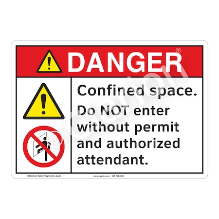 <p><strong>Word Message: </strong><br />Confined space. Do NOT enter without permit and authorized attendant. </p><p><strong>Description: </strong><br />Clarion Safety Systems brings you high quality danger confined space safety signs (ITEM# F1147-) which are produced on premium plastic material and are expertly designed to meet your confined space sign needs. </p><p><strong>Material Information:</strong></p> <ul> <li><strong>Material</strong>: (BE) Indoor/Outdoor Aluminum</li> <li><strong>Base Materials</strong>: .040" Rigid White Aluminum</li> <li><strong>Overlaminate</strong>: none</li> <li><strong>Mounting Option</strong>: Mounting holes</li> <li><strong>Application</strong>: Indoor/Outdoor</li> <li><strong>MaxTemp</strong> (F): 175</li> <li><strong>MinTemp</strong> (F): -40</li> <li><strong>Chemical Resistance</strong>: Good</li> <li><strong>UV Resistance</strong>: Good</li> <li><strong>Outdoor durability</strong>: Good</li> <li><strong>Storage Stability</strong>: Stable. Optimum storage conditions: 72 F @ 50% relative humidity</li> <li><strong>Expected Life Indoor</strong>: Long term</li> <li><strong>Expected Life Outdoor</strong>: 3-5 year (expected outdoor life may vary due to climatic conditions)</li> <li><strong>RoHS</strong>: Yes</li> <li><strong>CRoHS</strong>: Yes</li> <li><strong>REACH</strong>: No</li> </ul>