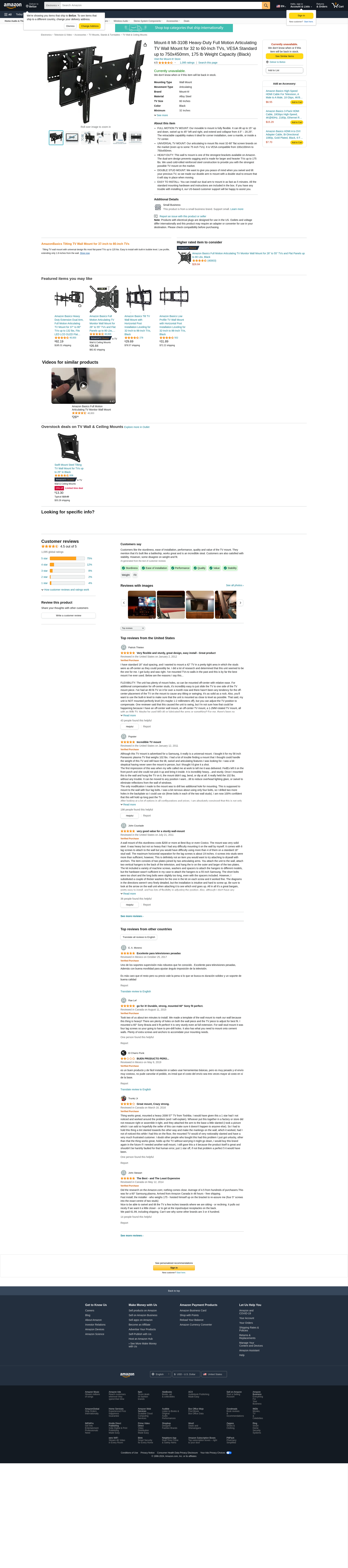 Mount-It MI-310B Heavy-Duty Full Motion Articulating TV Wall Mount for 32 to 60-Inch TVs, VESA Standard up to 750x450mm, 175 lb Weight Capacity (Black): Maxedbuy.com