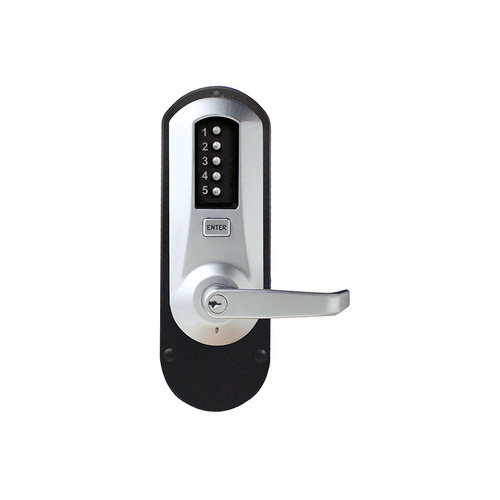 Simplex 5000 Series Provides exterior access by combination, while allowing free egress. Access Control: Mechanical pushbutton lock—eliminates problems and costs associated with issuing, controlling, and collecting keys and cards No Battery: Fully mechanical lock eliminates the material and labor expense of battery replacements Number of Codes: Single access code—one easy-to-manage code for all users Programming: Lock is easily programmed via keypad without removing the lock from the door Handing: Non-handed, pre-assembled for left-hand door installations—easily changed in the field Key Override: Key-in-lever cylinders, small format interchangeable cores, large format removable core Accessibility Standard: Americans with Disabilities Act (ADA)