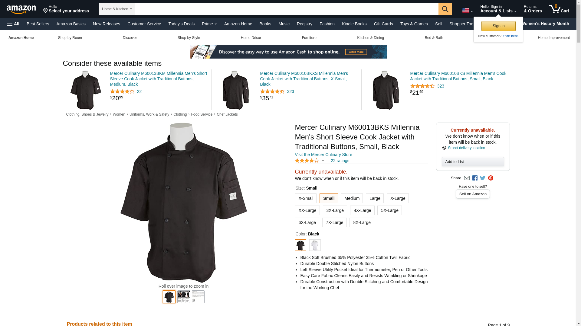 Mercer Culinary M60013BKS Millennia Men's Short Sleeve Cook Jacket with Traditional Buttons, Small, Black