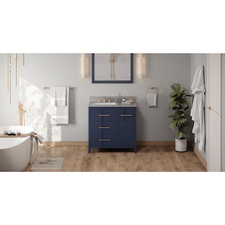 36In. Blu Katara Vanity, Left Offset, Steel Gry Cultured Mrbl Vanity Top, Undrmnt Rctngl Bowl