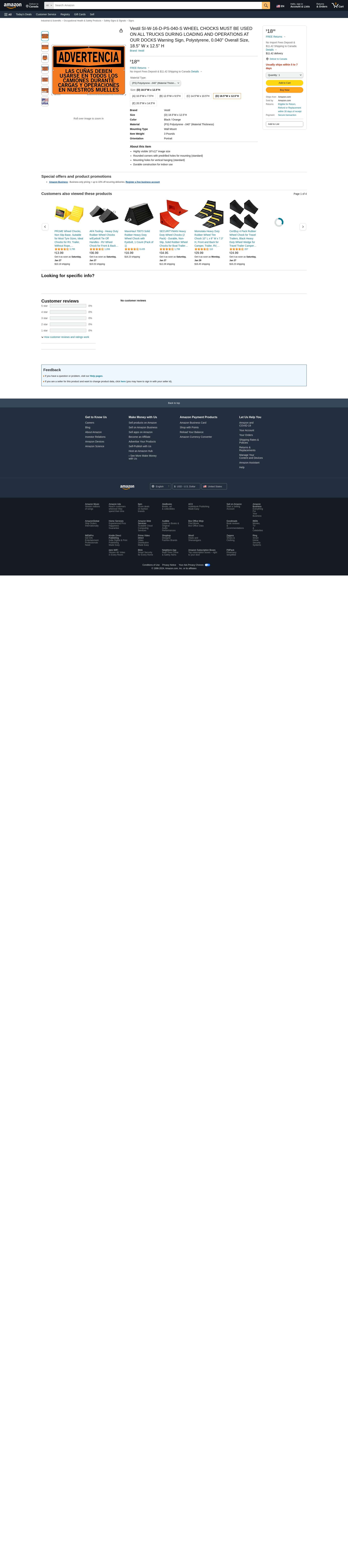 Vestil SI-W-16-D-PS-040-S WHEEL CHOCKS MUST BE USED ON ALL TRUCKS DURING LOADING AND OPERATIONS AT OUR DOCKS Warning Sign, Polystyrene, 0.040" Overall Size, 18.5" W x 12.5" H