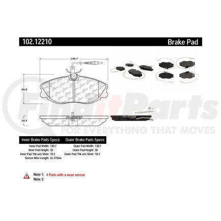 Centric C-Tek Semi-Metallic Brake Pads with Shims 102.12210 | 102.12210