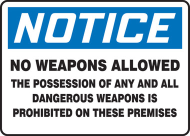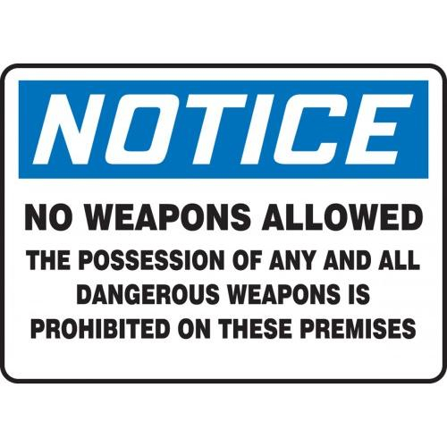 Order MACC825VA by Accuform OSHA Notice Safety Sign "No Weapons Allowed..." - US Mega Store