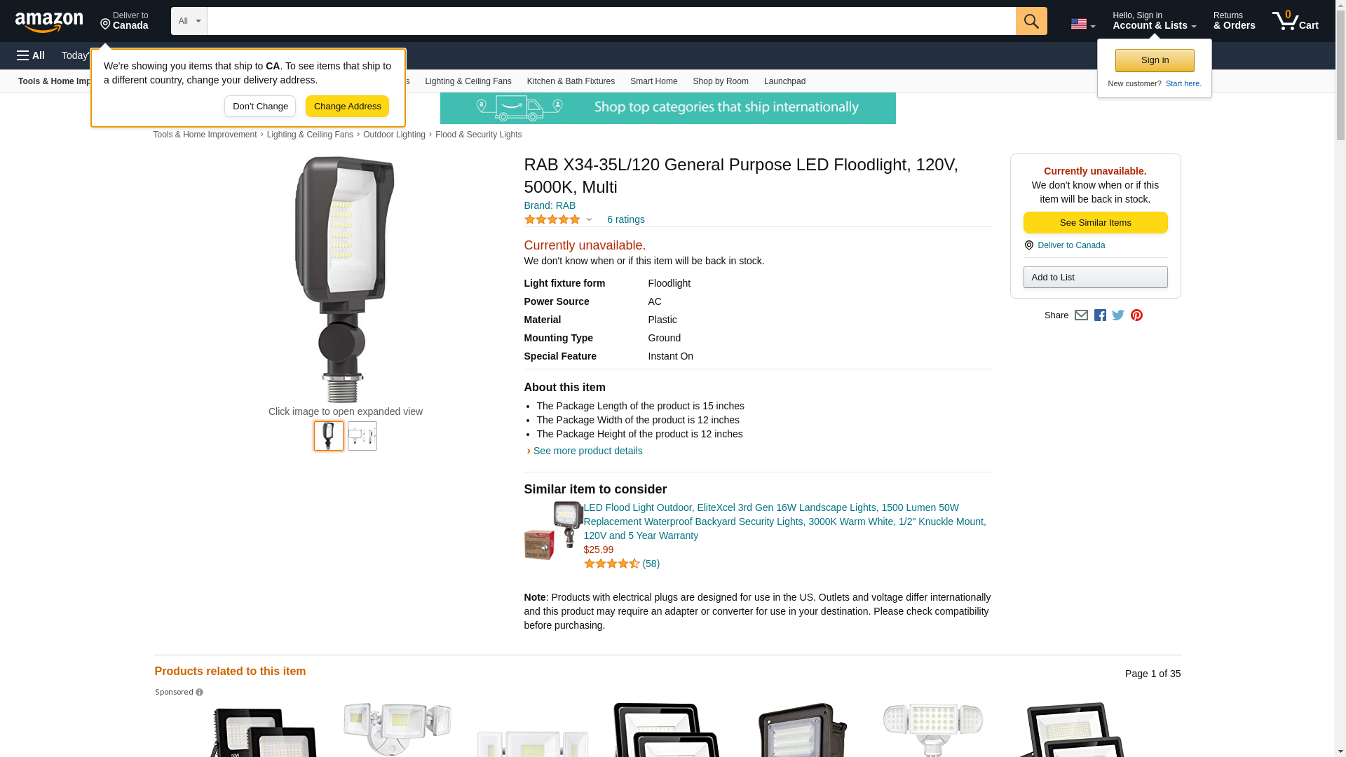 - RAB X34-35L/120 General Purpose LED Floodlight, 120V, 5000K