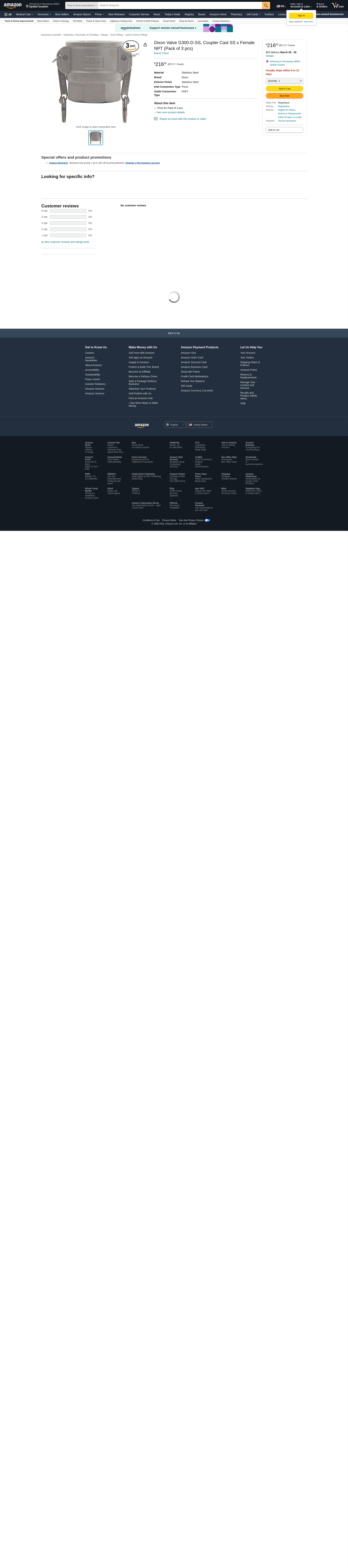 | Airline Hydraulics | DIXON G300-D-SS | 1 | 1 | 1 @ $102.06 | |