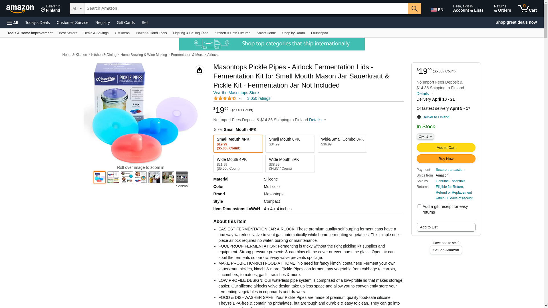 Pickle Pipes are simply the perfect fermenting lids for home vegetable fermentation. They feature one-way airlocks that vent gas automatically so they require no babysitting and no interruptions to burp lids. They prevent spoilage by releasing the gas that builds up during the fermentation process while preventing oxygen and airborne contaminants from getting inside. So they're the ideal lids for beginning home fermenters and old pros alike, no need for an expensive sauerkraut crock or fermenting crock. They are made of high grade BPA-free and and contain no phthalates, so you can be sure they're food safe. They wash up with soap and water, or go right into the dishwasher along with the jars. Unlike the water venting types - which can be several inches taller - they are maintenance-free and their low-profile design makes them easy to store in cupboards and drawers. So don't waste money on expensive and ineffective probiotic supplements when you can improve your gut health economically at home by making your own delicious ferments. Our Pickle Pipes make it painless to ferment your own probiotic-rich sauerkraut, kimchi, carrots, tomatoes, garlic, radishes and more! Pickle Pipes make pickling "set it and forget it" simple. The set of wide mouth mason jar Pickle Pipes comes in four attractive colors (red, teal, purple and blue) so you can keep track of similar ferments easily. And because they're from the mason jar accessory experts, you can be sure they are an exact fit for your jars. Trust Masontops for the best selection of mason jar tools!