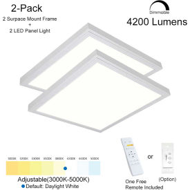 2-Pack 2x2 FT LED Panel Light, eSenLite, 40W, 4200 Lumens, 3000-5000K Adjustable, 0-10V Dimmable, Remote Control, 24x24 Inch LED Drop Ceiling Light, UL Listed and DLC Listed