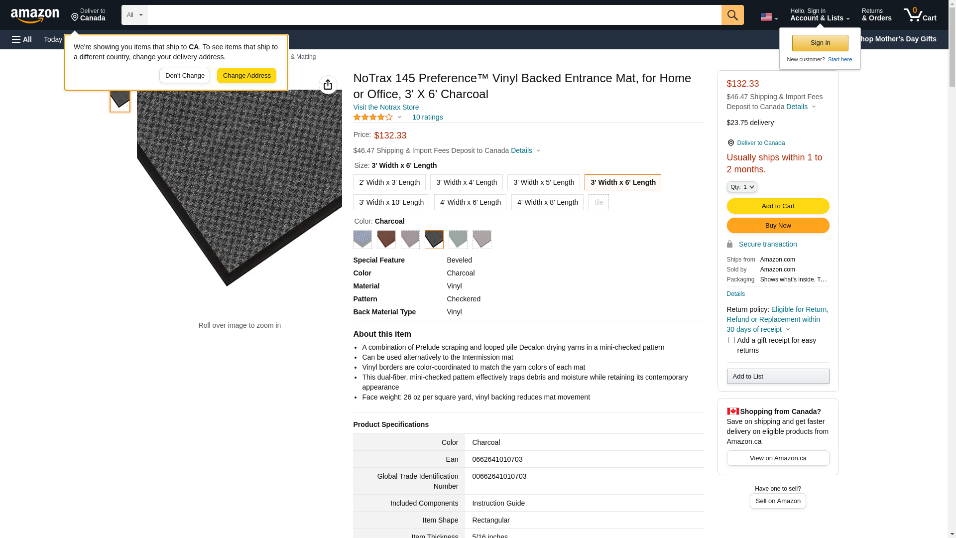 NoTrax 145 Preference⢠Vinyl Backed Entrance Mat, for Home or Office, 3' X 6' Charcoal