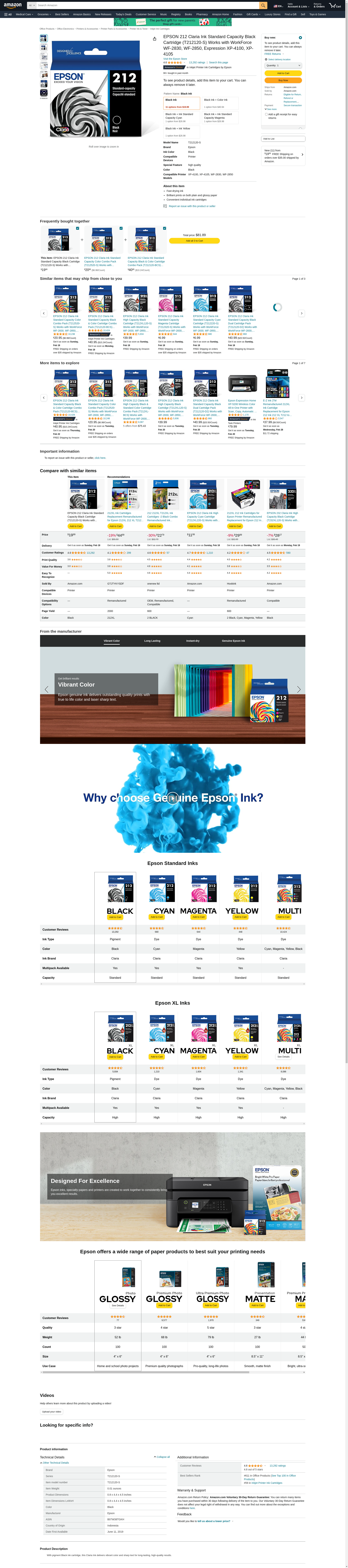 EPSON 212 Claria Ink Standard Capacity Black Cartridge (T212120-S) Works with WorkForce WF-2830, WF-2850, Expression XP-4100, XP-4105