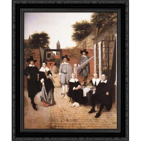 Dutch Family 20x23 Black Ornate Wood Framed Canvas Art by Hooch, Pieter de