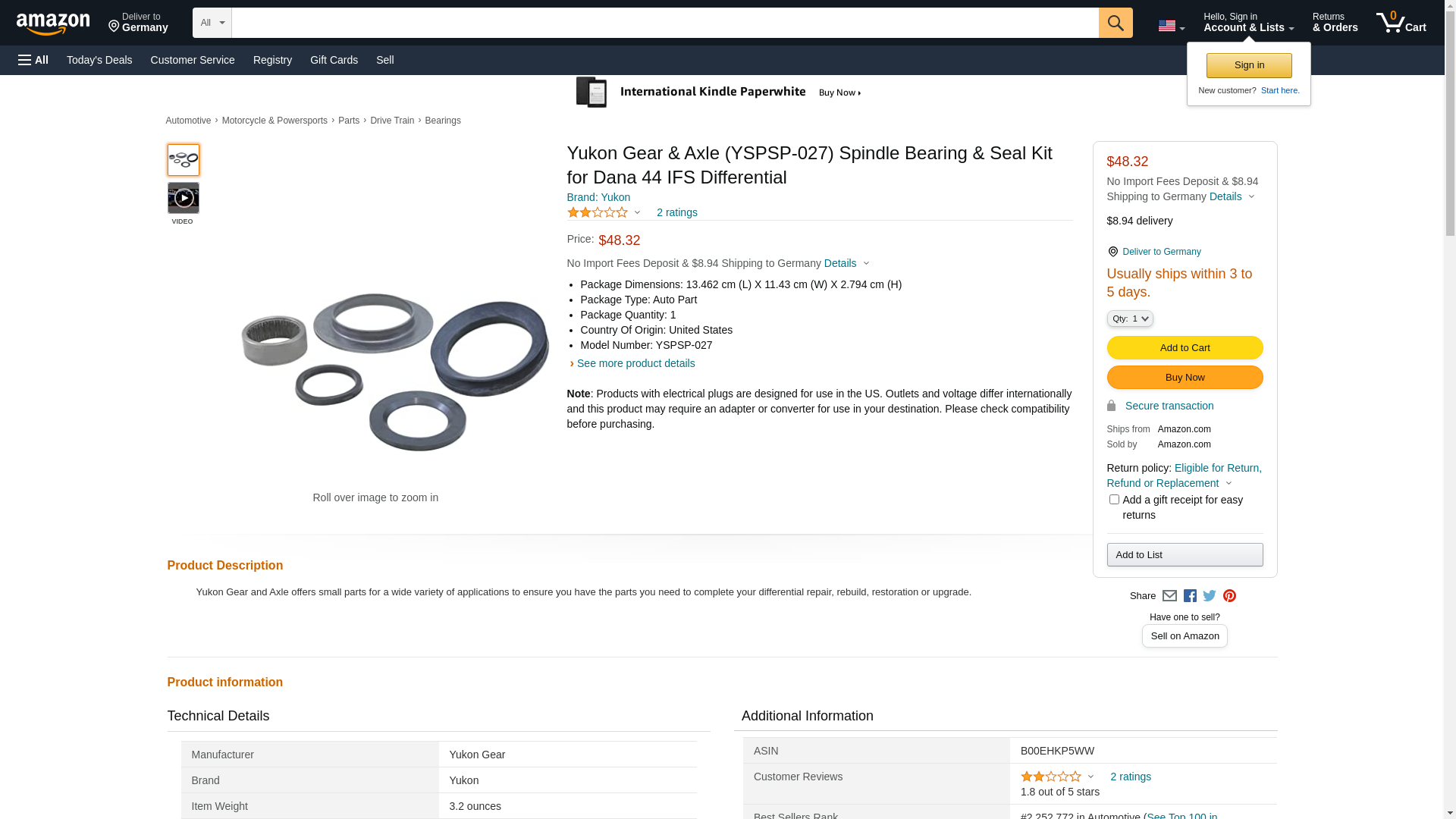 Buy Yukon Spindle Bearing & Seal Kit for Dana 44 IFS - YSPSP-027 for 45.93 at Armageddon Turbo & Performance