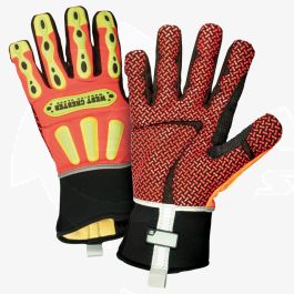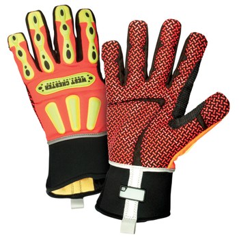 R2 Safety Cut features a cut-resistant knit Kevlar lined palm while the pique lining w/CoolPass on the back of hand wicks away sweat. Built in Enprotex liner provides a waterprood barrier to keep moisture out. Glove palm and fingers feature synthetic leather overlayed with additional layer of synthetic leather printed with red silicone pattern for an oil resistant, better visibility grip. Back of hand impact zones protect against bumps and bruises.