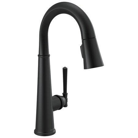 Delta Faucet Emmeline Matte Black Bar Faucet with Pull Down Sprayer, Black Bar Sink Faucet Single Hole, Wet Bar Faucets Single Hole, Prep Sink Faucet, Black Kitchen Faucet, Matte Black 9982-BL-DST