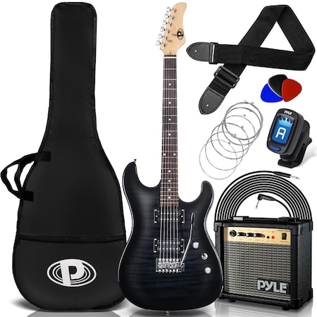 Pyle Electric Guitar Kit with Amp, Full Size Instrument with Humbucker Pickups, Guitarra Electrica Amplifier and Beginner Bundle Accessories, 39" Legacy Black