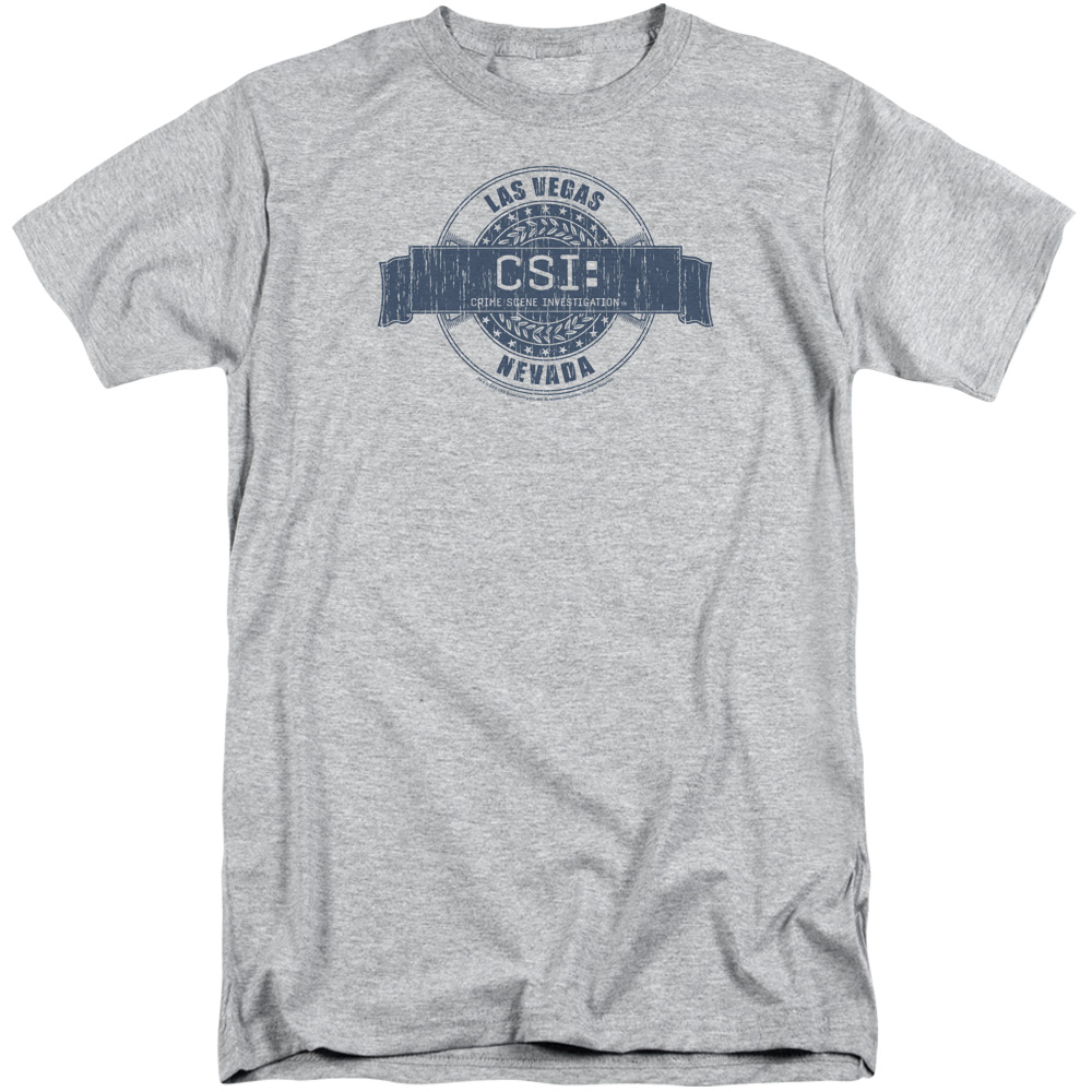 Trevco CBS367-ATT-4 CSI & Vegas Badge Adult Tall Fit 18-1 Short Sleeve T-Shirt, Athletic Heather - Extra Large