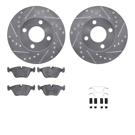 Dynamic Friction Company Front Brake Rotors-Drilled and Slotted-Silver with 5000 Euro Ceramic Brake Pads includes Hardware 7612-73000
