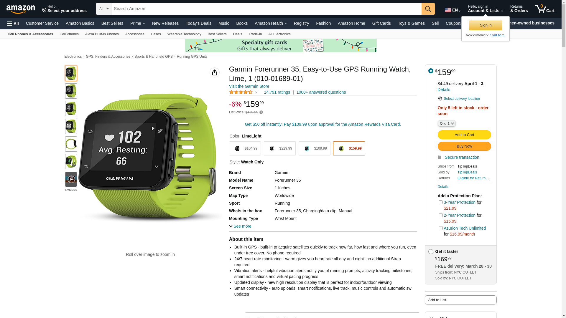 Garmin 010-01689-01 Forerunner 35 GPS-Enabled Running Watch (Limelight)