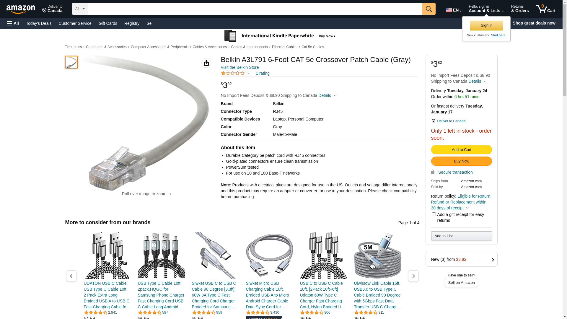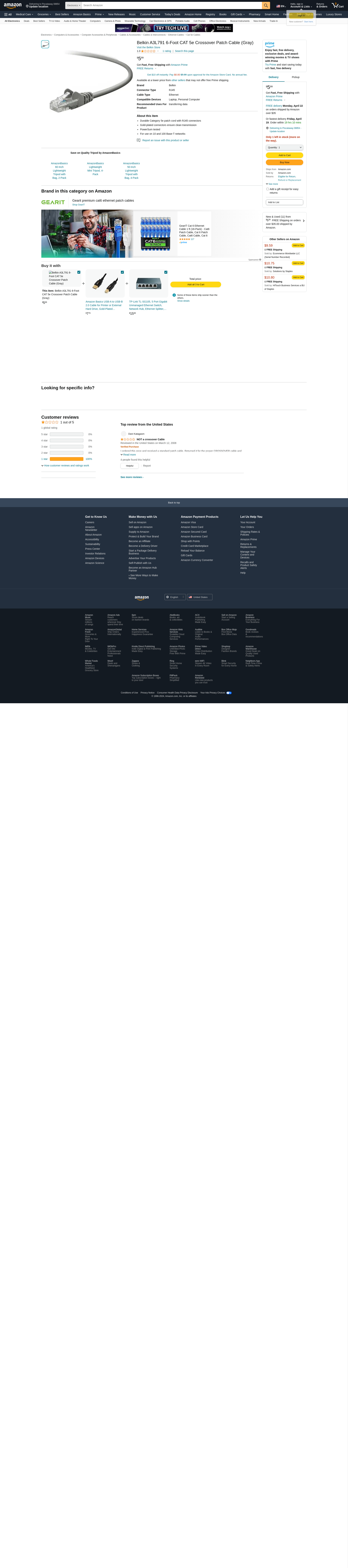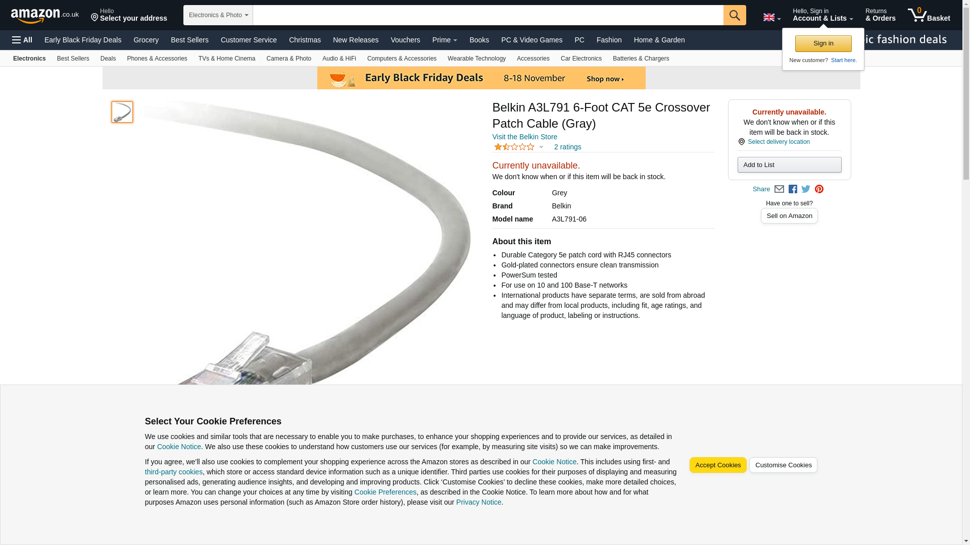 | Feature | BELKIN cat5e 6ft grey patch cord A3L791-06 |