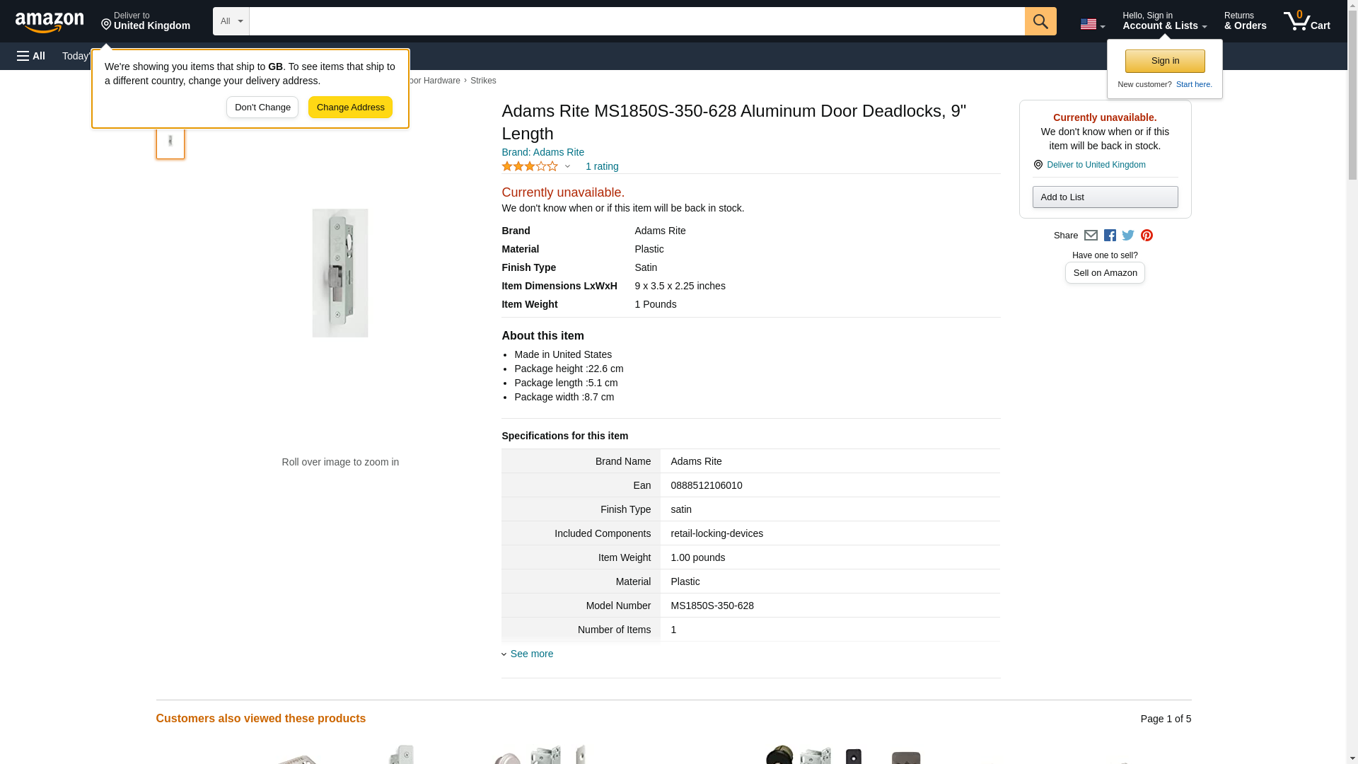 Adams Rite MS1850S-350-628 Aluminum Door Deadlocks, 9" Length