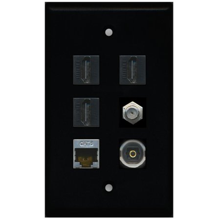 RiteAV - 3 HDMI 1 Port Coax Cable TV- F-Type Shielded Cat6 Ethernet Toslink Wall Plate - Black