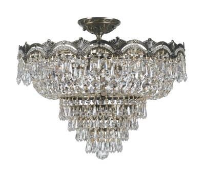 21.5W Majestic Historic Brass Semi Flush Ceiling Light with Swarovski Strass Crystals