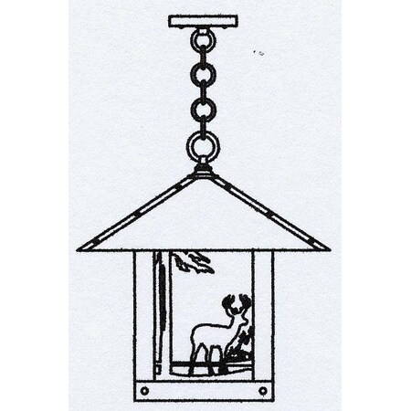 Arroyo Craftsman TRH-16DROF-AC Timber Ridge Pendant with Deer Filigree, 16", Antique Copper Metal Finish, Off White Glass