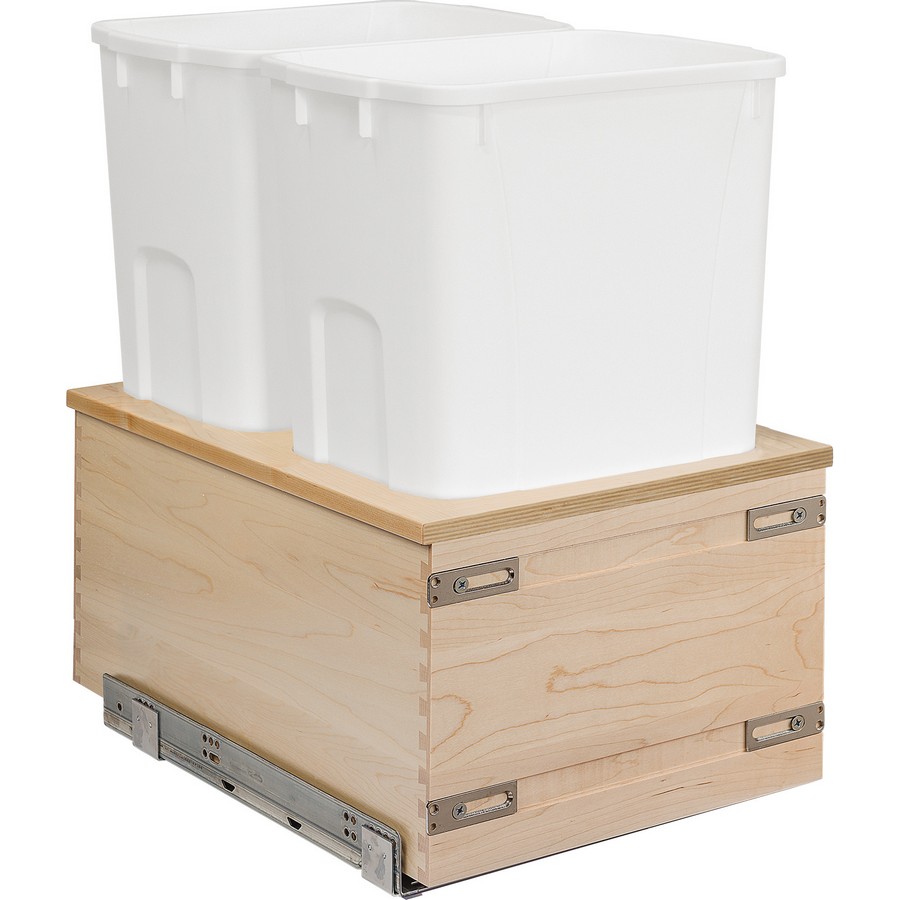 Century Components SIGBM14PF-50 Kitchen Pull Out Waste Bin Container - 50 Qt White Double - Maple - Soft Close Bottom Mount, 14-7/8"