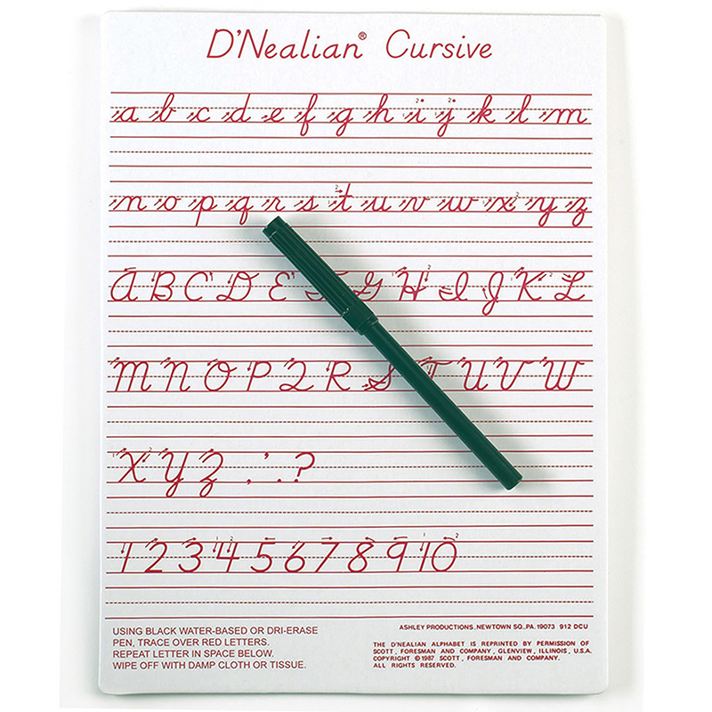 Ashley Productions ASH912DCUBN 6 Each Dnealian Cursive Write-On Wipe-Off Board, 9 x 12 in.