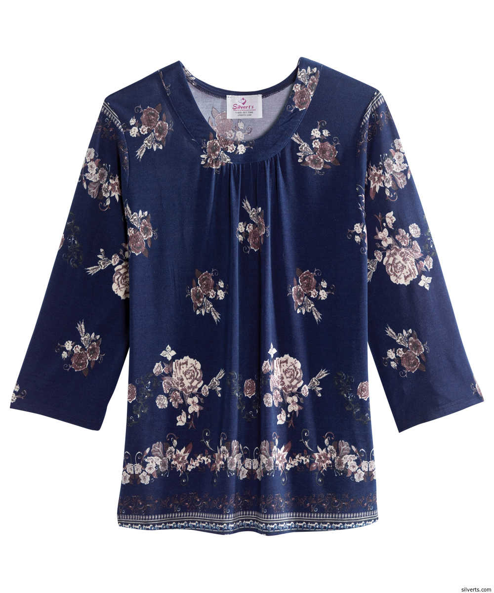 Silverts 231800704 Adaptive Top for Women, Navy Floral - Extra Large