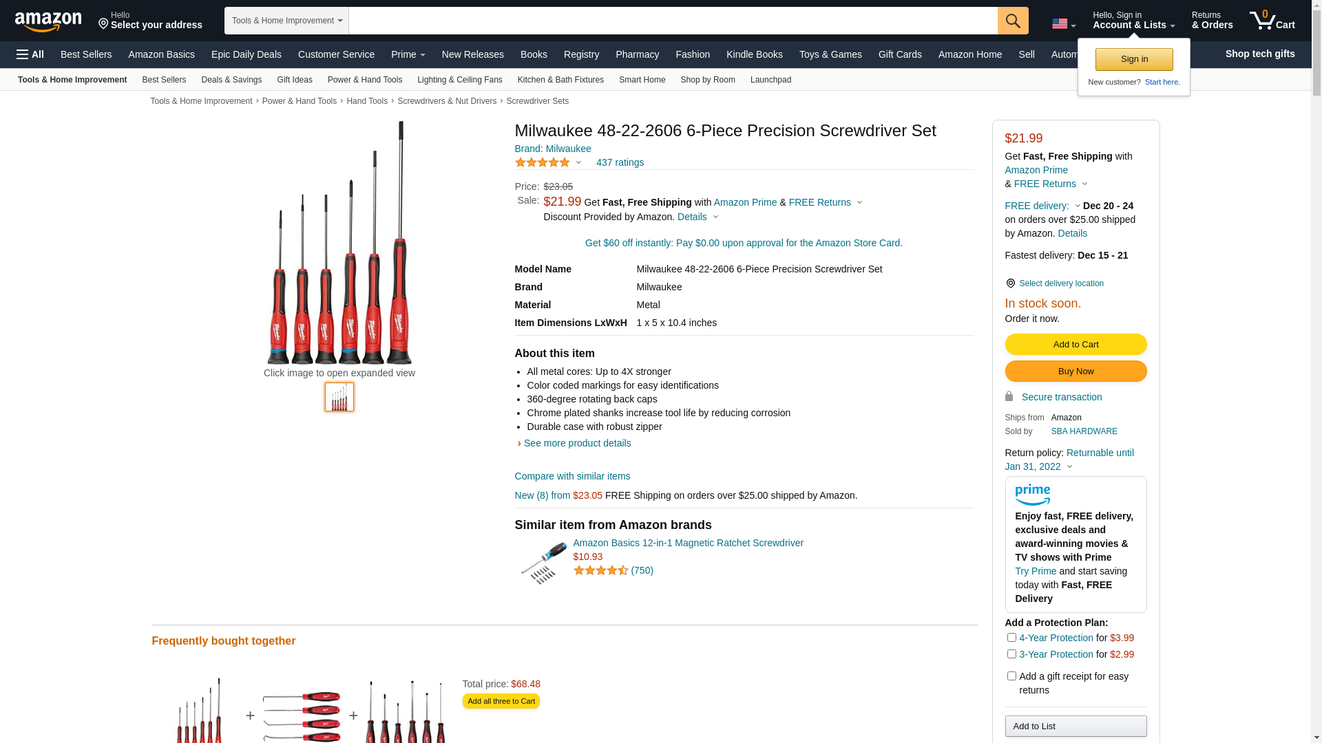 | ToolUp.com | MILWAUKEE 48-22-2606 | 1 | -2 | 1 | 1 @ $25.97 |