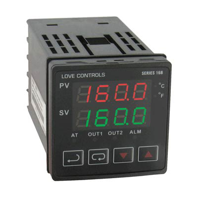 Love 1/16 DIN Temp/Proc Controller, 16B-63-LV, Lin Voltage Output 1 & Relay Output 2, Low Voltage
