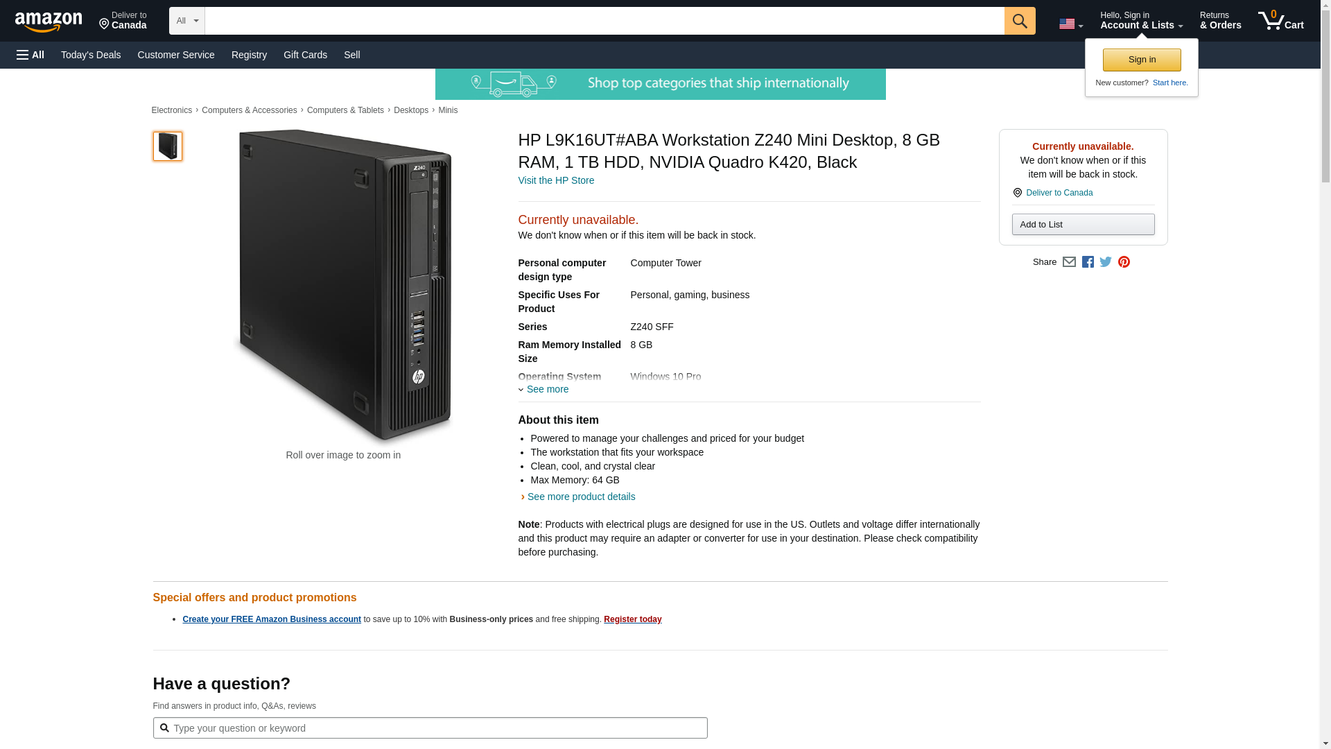 HP - SB Workstations L9K16UTNo.ABA Z240 Workstation SFF i7-6700 3.4Ghz 8GB 1TB K420
