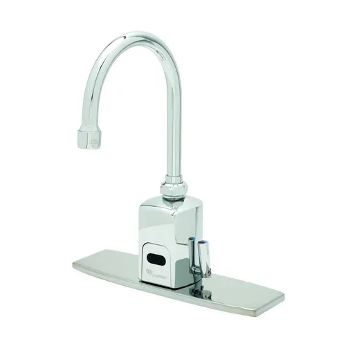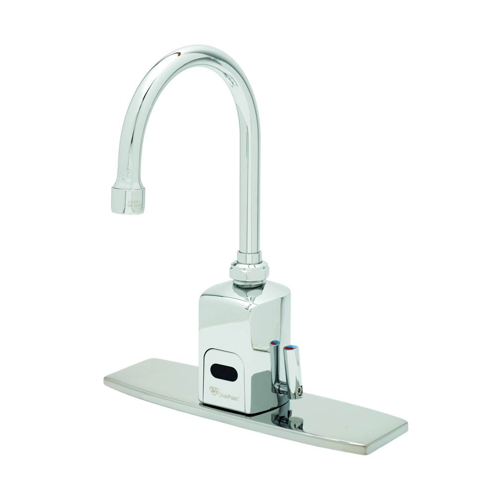 T&S Brass EC-3130-8DP ChekPoint Above Deck Electronics Faucet, 8" Forged Deck Plate, SW Gooseneck with 2.2 GPM, VR Aerator