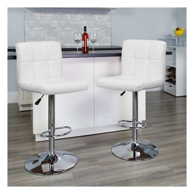 Flash Furniture Alexandra 2 Pack Contemporary White Quilted Vinyl Adjustable Height Barstool with Chrome Base