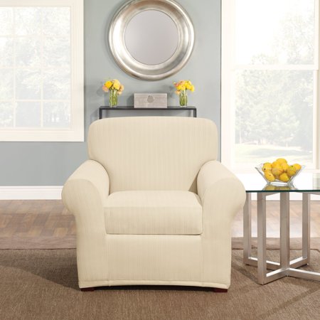 <br /> <b>Sure Fit Stretch Pinstripe Chair Slipcover:</b> <ul> <li>Subtle stripes create balance and the 2-piece separate seat allows a custom look</li> <li>Fabric content: 94 percent polyester/6 percent Spandex</li> </ul>