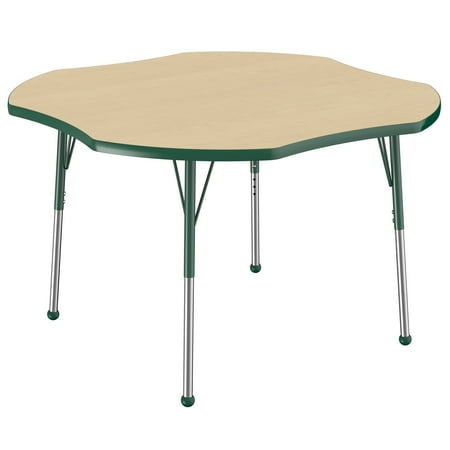 ECR4Kids Everyday T-Mold 48" Clover School Activity Table, Standard Legs w/Ball Glides, Adjustable Height 19-30 inch (Maple/Green)