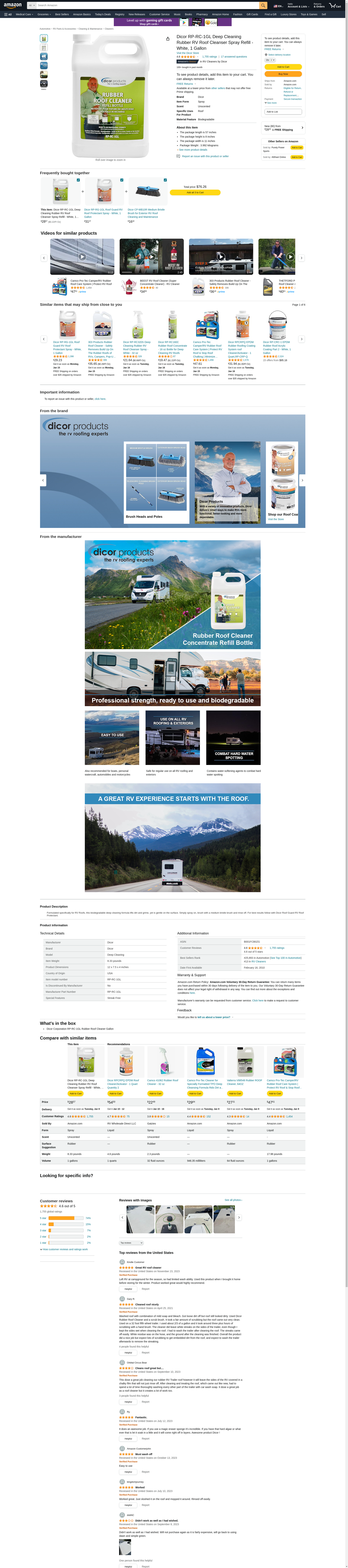 Formulated specifically for RV rubber roofing, this biodegradable deep cleaning formula lifts dirt and grime, yet is gentle on the surface. Simply spray on, brush with a bristle brush and rinse off. For best results follow with Dicor Roof Gard Roof Protectant.