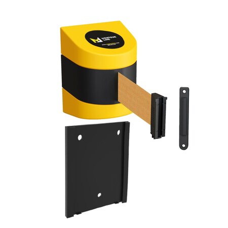 Retr. Belt Barrier Yellow Removable Wall Mount, 15ft. Brown Belt (F)
