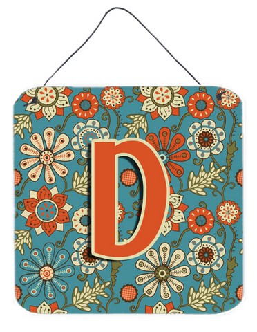 Caroline's Treasures CJ2012-DDS66 Letter D Flowers Retro Blue Wall or Door Hanging Prints Aluminum Metal Sign Kitchen Wall Bar Bathroom Plaque Home Decor, 6x6, Multicolor