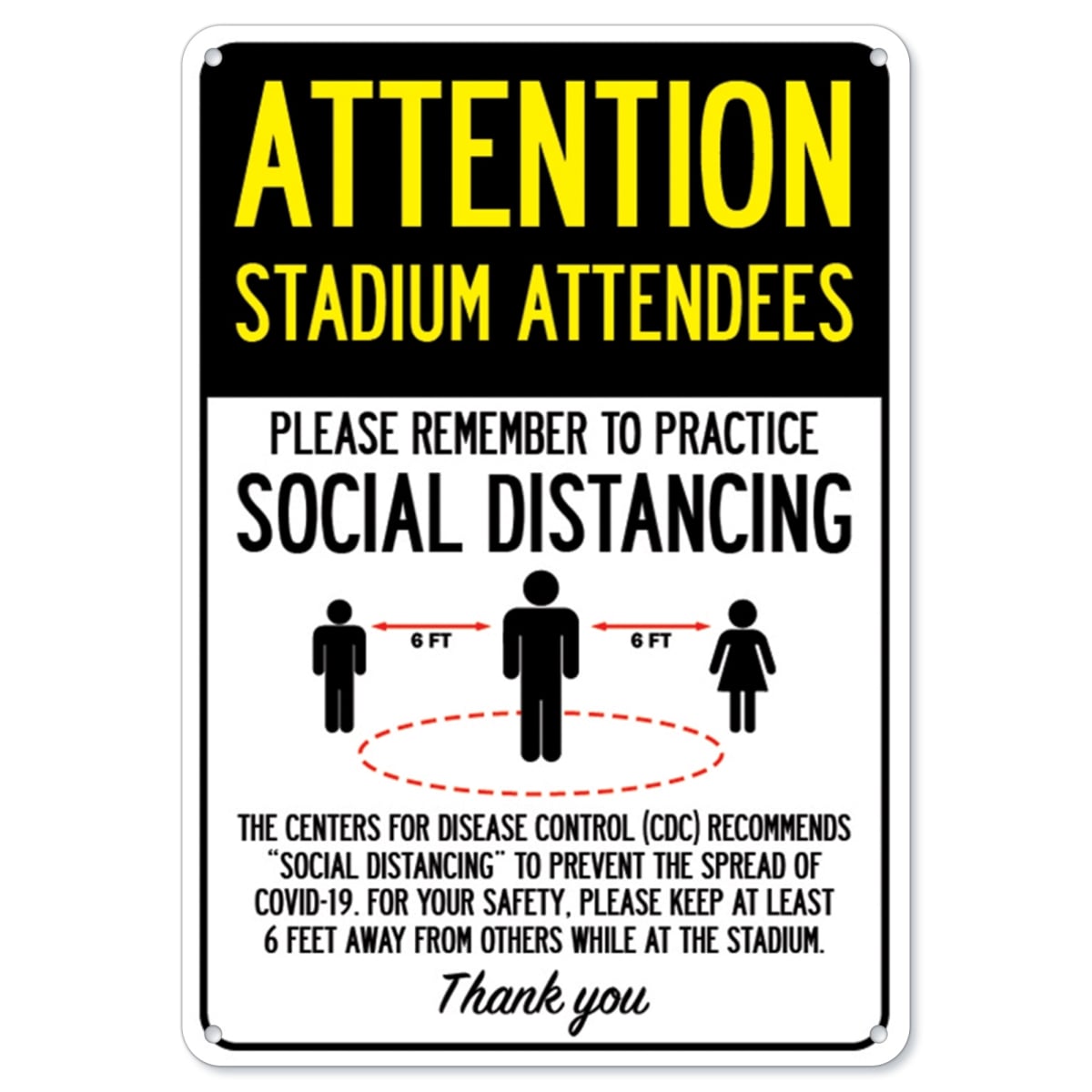 SignMission OS-NS-P-710-25376 Covid-19 Notice Plastic Sign - Attention Stadium Attendees Practice Social Distancing