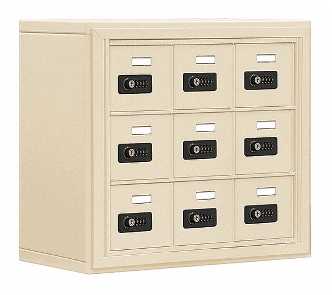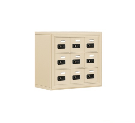Cell Phone Storage Locker - 3 Door High Unit (8 Inch Deep Compartments) - 9 A Doors - Sandstone - Surface Mounted - Resettable Combination Locks
